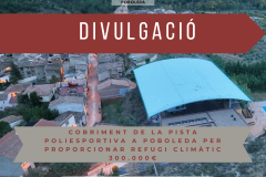 El Departament d'Acció Climàtica, Alimentació i Agenda Rural de la Generalitat de Catalunya, dins de la convocatòria de subvencions a ens locals de Catalunya per al desenvolupament d'actuacions de mitigació i d'adaptació al canvi climàtic ,ha atorgat una subvenció pel cobriment de la pista poliesportiva a Poboleda per proporcionar refugi climàtic amb un import de 300.000€.