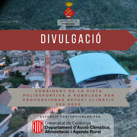 El Departament d'Acció Climàtica, Alimentació i Agenda Rural de la Generalitat de Catalunya, dins de la convocatòria de subvencions a ens locals de Catalunya per al desenvolupament d'actuacions de mitigació i d'adaptació al canvi climàtic ,ha atorgat una subvenció pel cobriment de la pista...